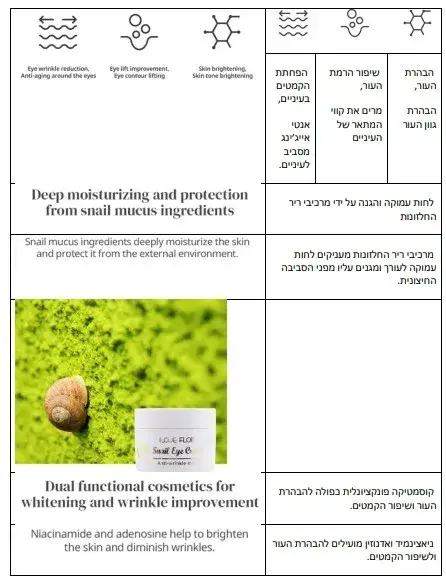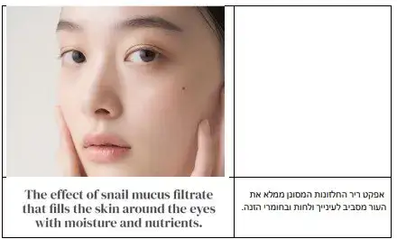 ריר חלזונות – לריר החלזונות סגולות אנטי-אייג'ינג יוצאות דופן, הוא הוכח כמסייע ביצור האדנוסין והקולגן ומשפר דרמטית את מרקם העור.